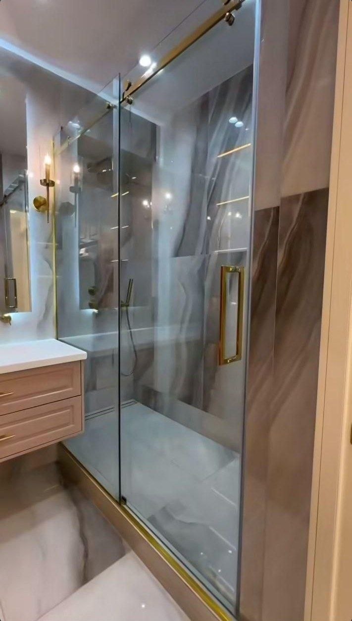 کابین دوش کشویی فریملس شیشه سکوریت یراق استیل